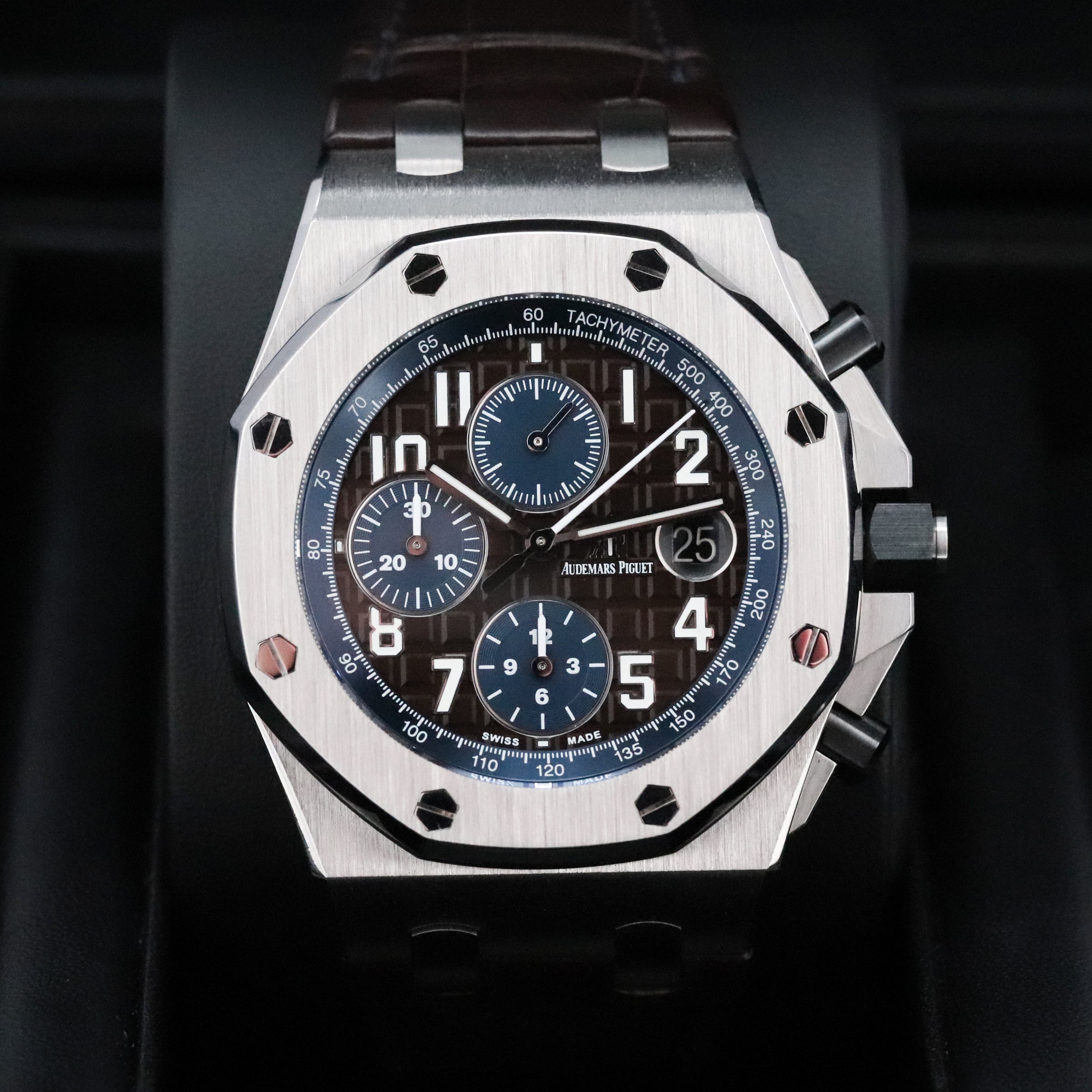 Audemars Piguet Royal Oak Offshore Chronograph [2021 COMPLETE] 42mm Steel Case, Brown Tapisserie Dial, Steel Silver Bezel Brown Leather Strap 26470ST