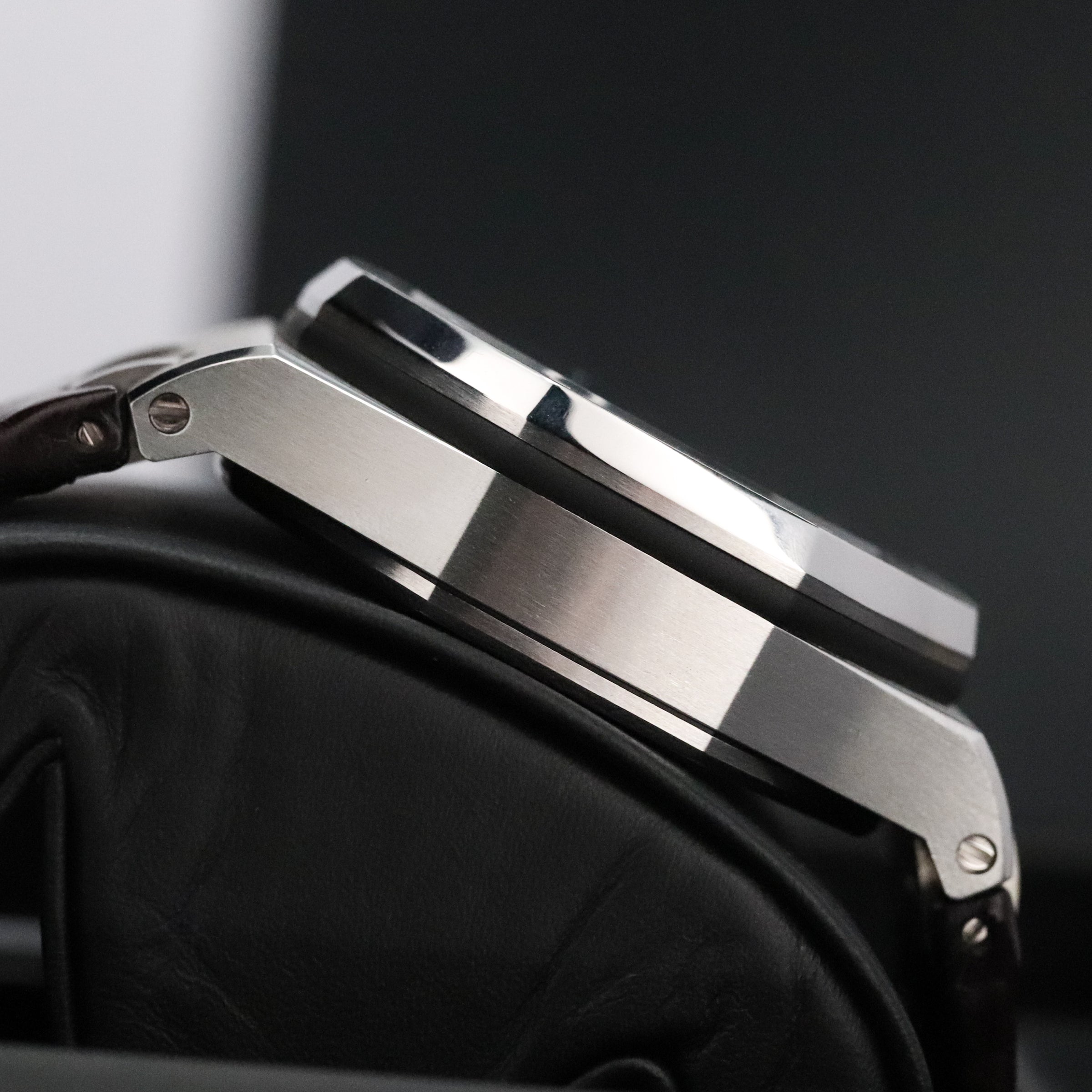 The Royal Oak Offshore and its 42mm case are credited for starting the trend for oversized watches, making this the watch that changed the industry forever. The brown "Havana style" Méga Tapisserie dial with blue counters and inner bezel creates one of the most unique and sought after colorways in the Offshore collection. Launched in 1993 as an anniversary celebration of the classic Royal Oak, the Offshore has become an icon in its own right with a devoted collector following.
