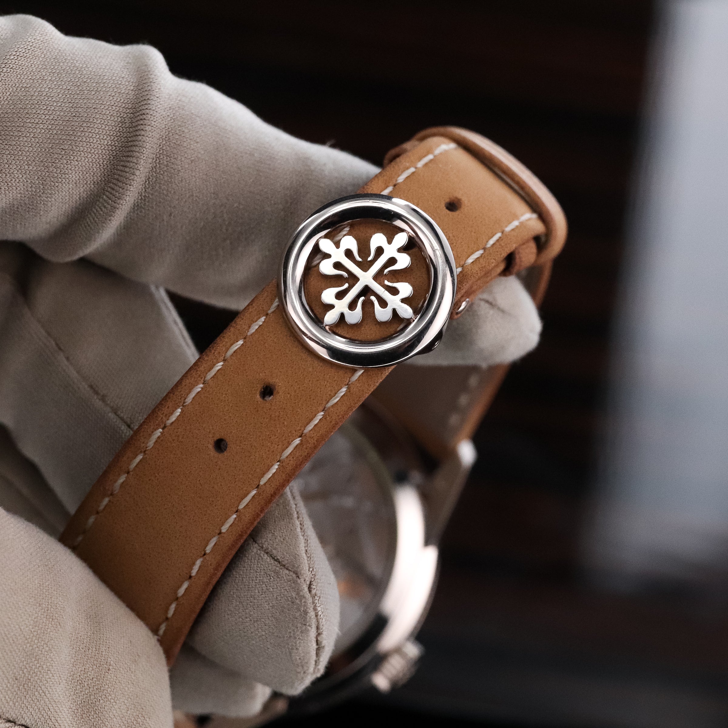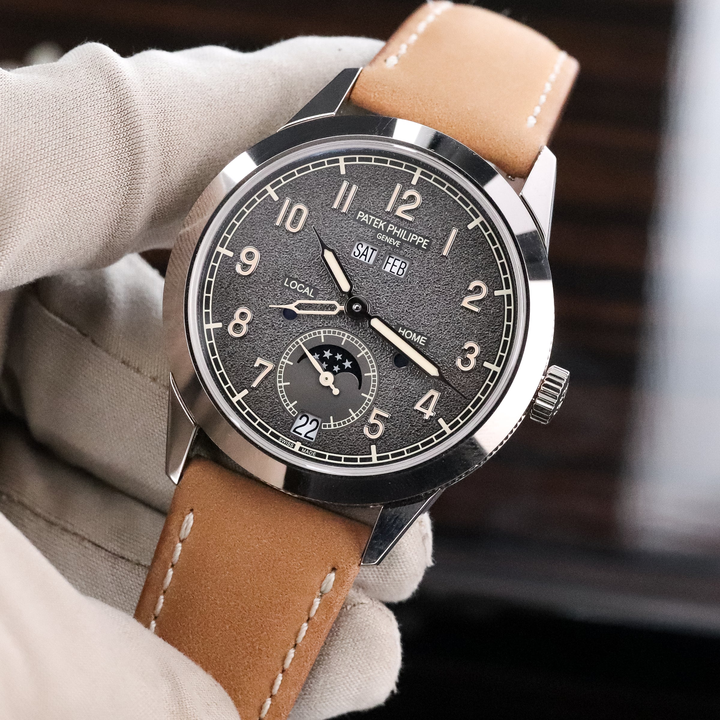 The 5326G-001 is a perfect example of why Patek Philippe sits at the very top of modern watchmaking. By combining an annual calendar with their Travel Time dual-time function, Patek created a piece that’s both highly technical and beautifully executed. The charcoal gray dial, finished with a textured grain and beige lume, gives it a distinctive vintage-inspired feel, making it one of the most character-driven watches in Patek’s lineup.