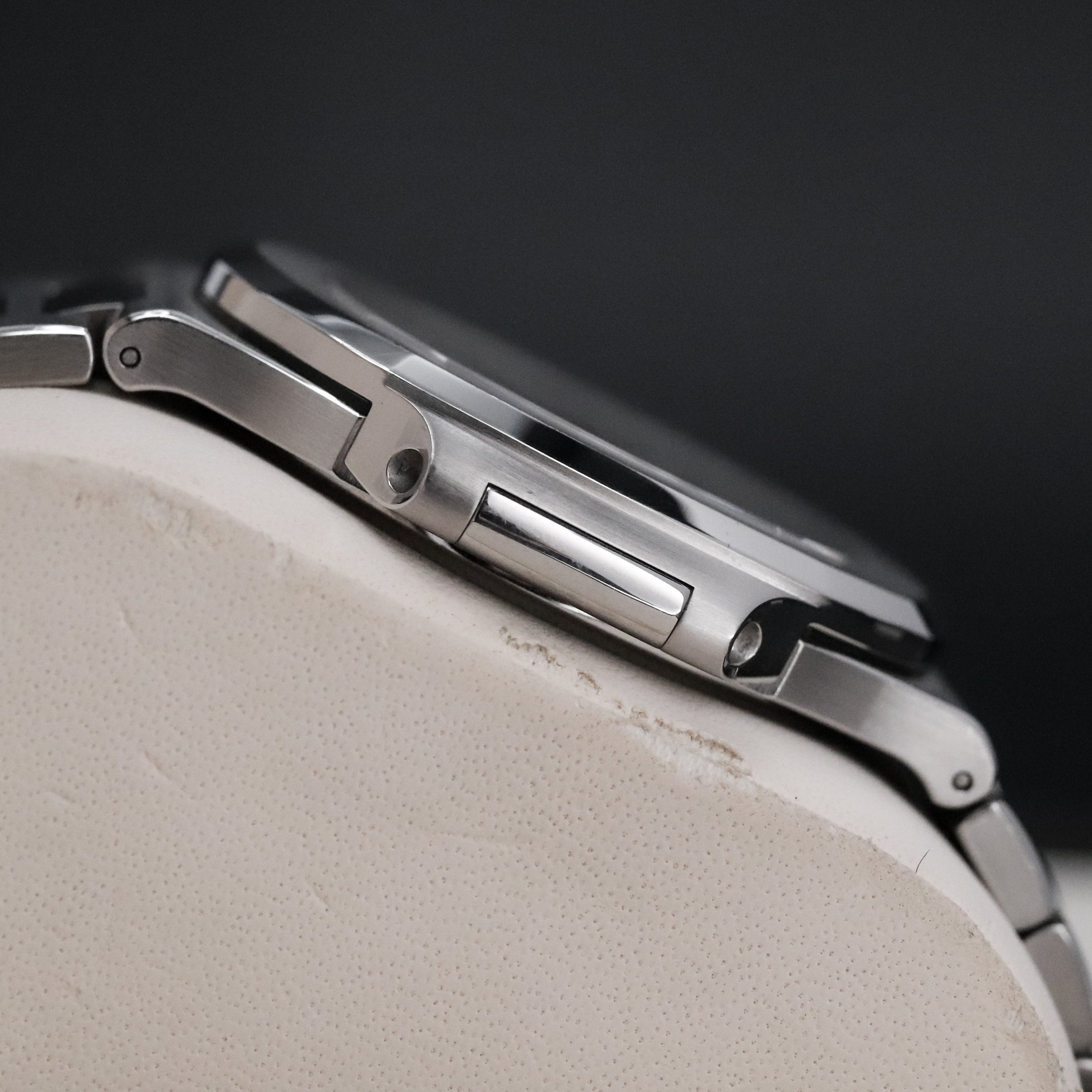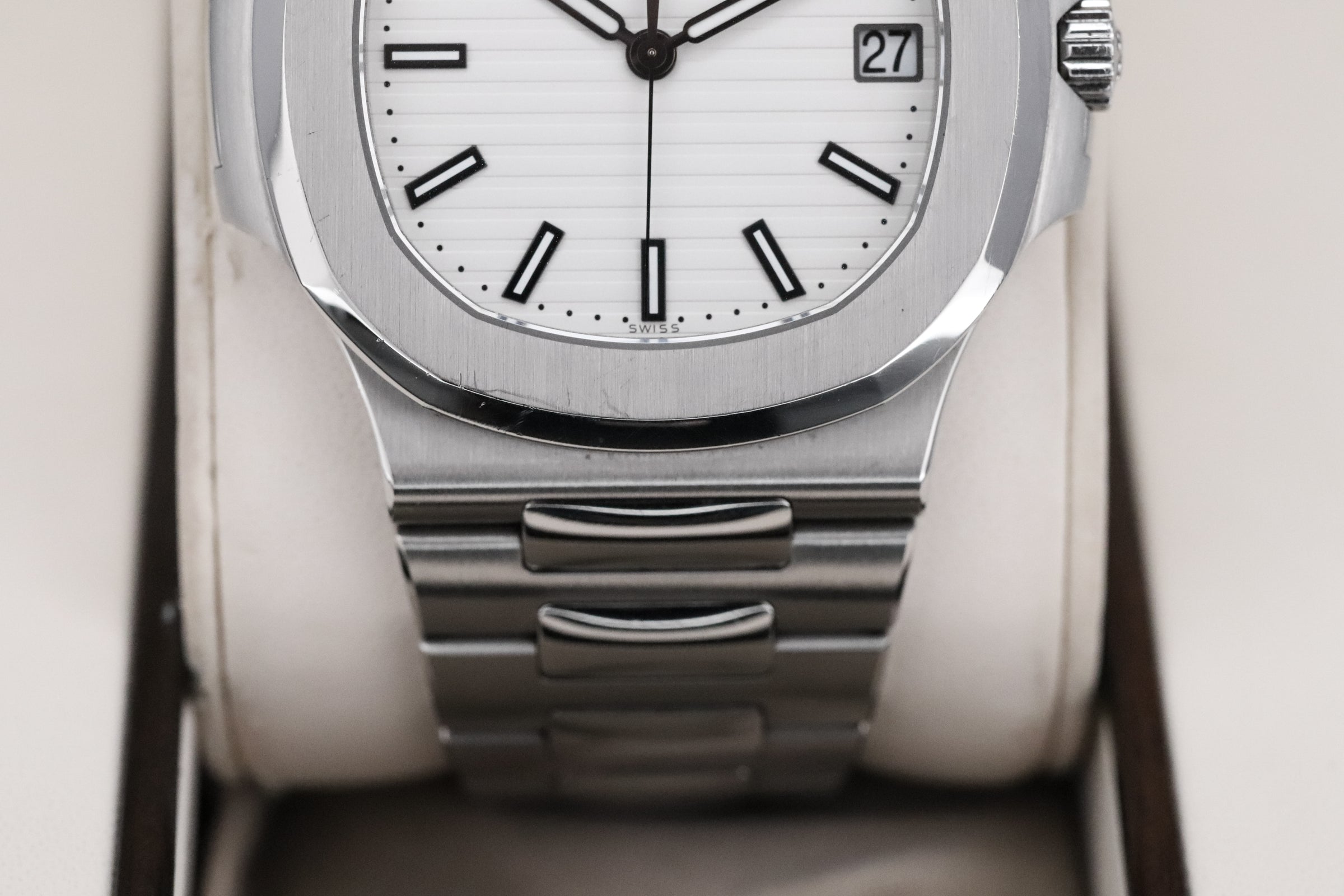 The most sought-after luxury sports watch in the world, now discontinued and commanding legendary status. Designed by the legendary Gérald Genta, the Nautilus was inspired by maritime portholes, setting a new standard for luxury sports watches, with Genta famously sketching the design in just five minutes while dining at a restaurant. Produced from 2012 until its discontinuation in early 2020, the white dial ref. 5711 lived in the shadow of its blue-dialed cousin, and as such, would be a rarer sight on the wrists of collectors.