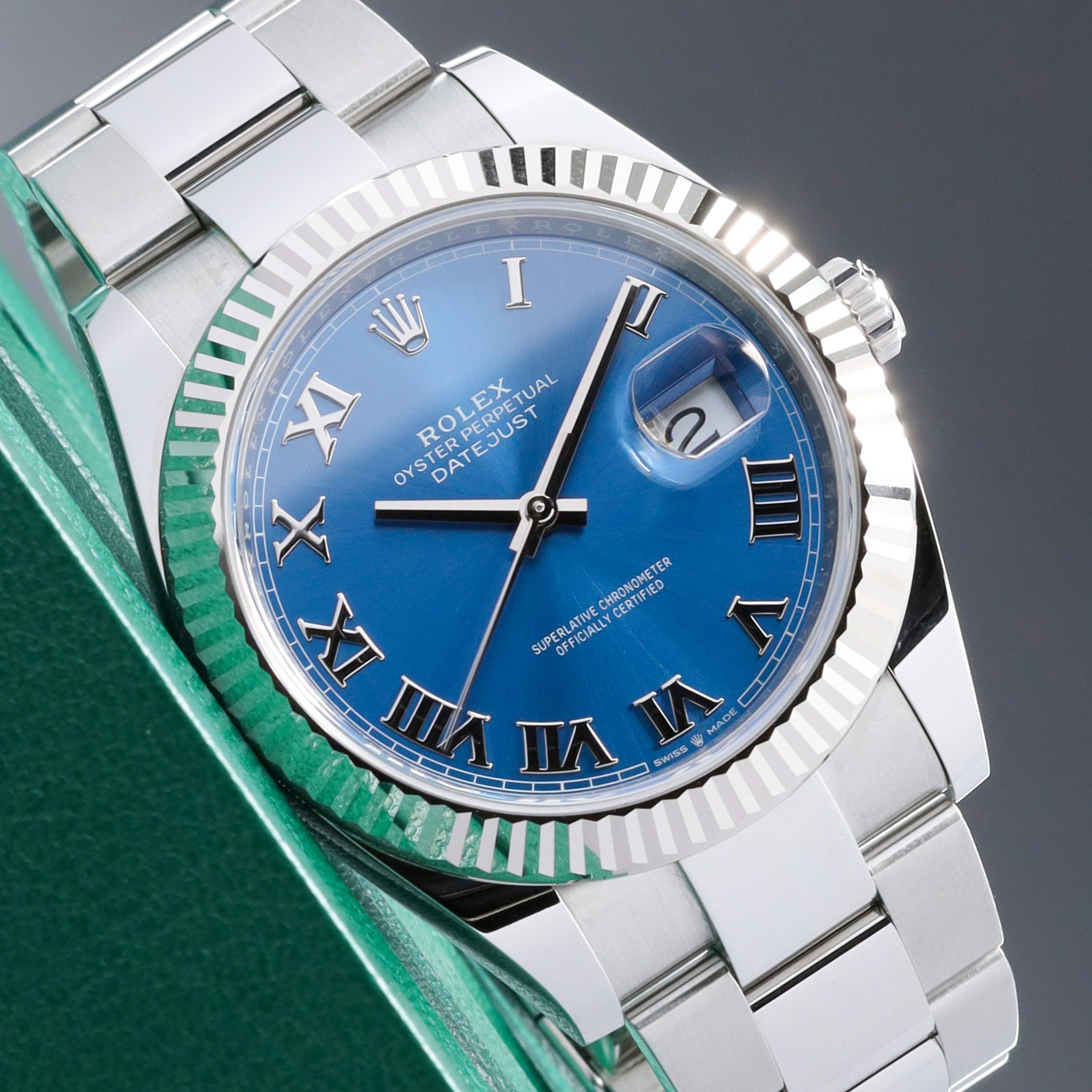 Rolex Datejust 2025 41mm Osytersteel Case Blue Roman Dial Fluted Bezel Oyster Bracelet 126334