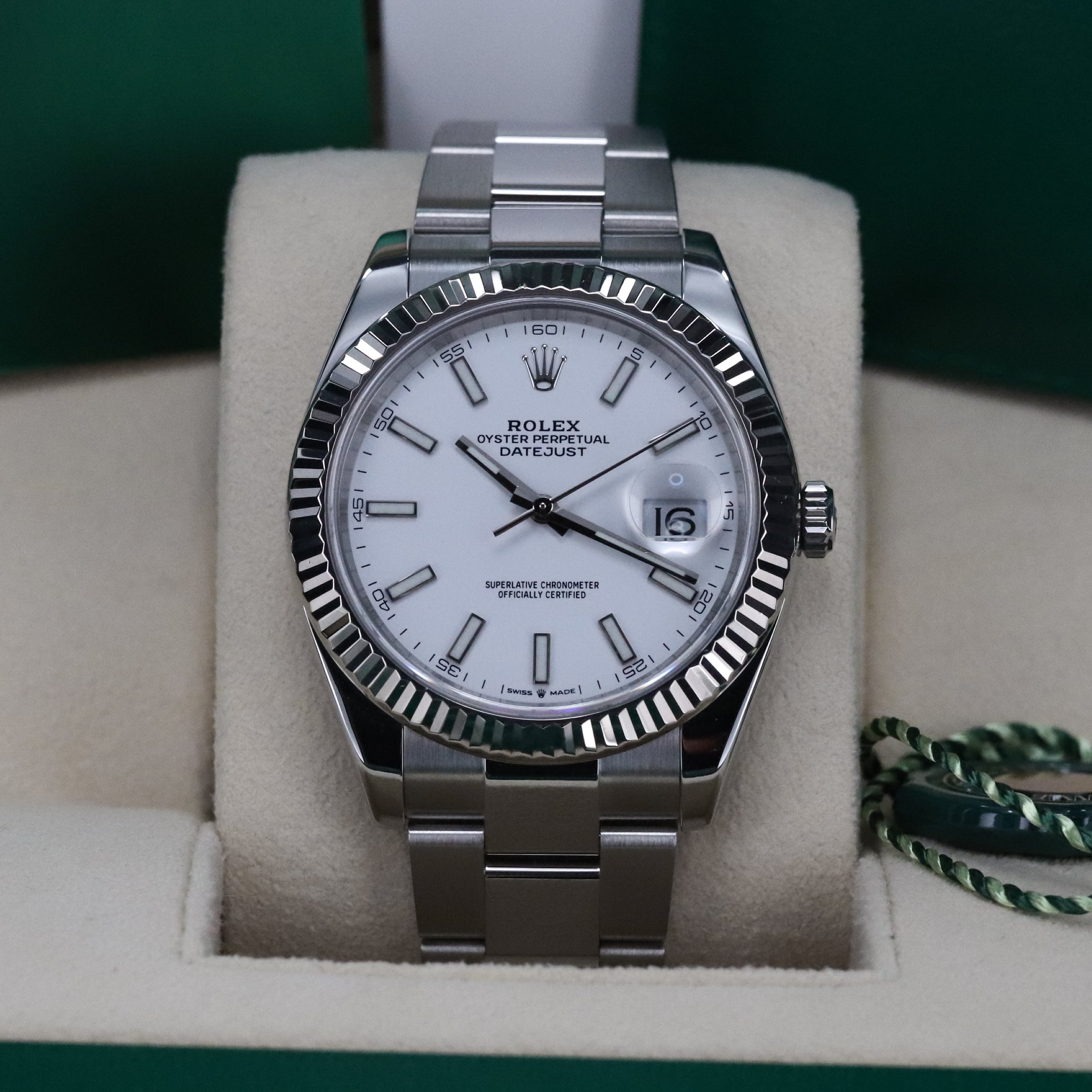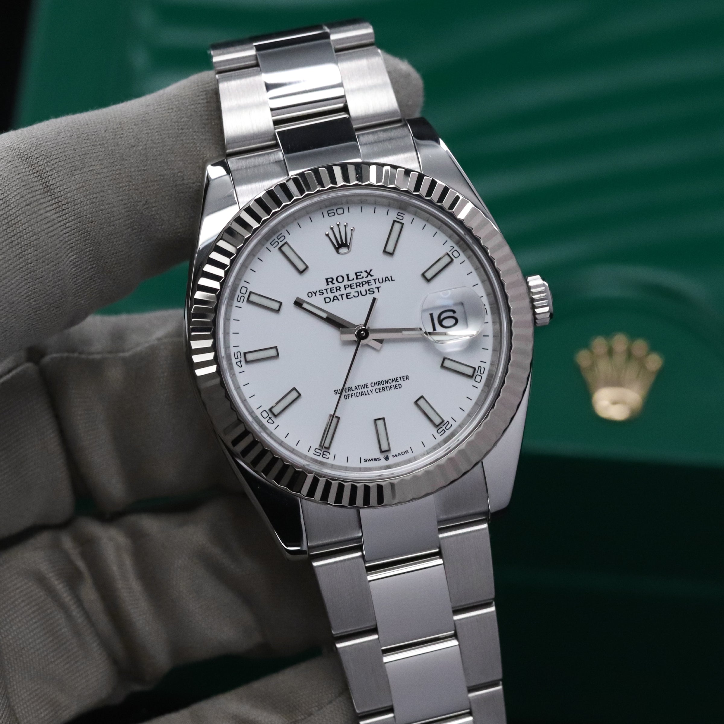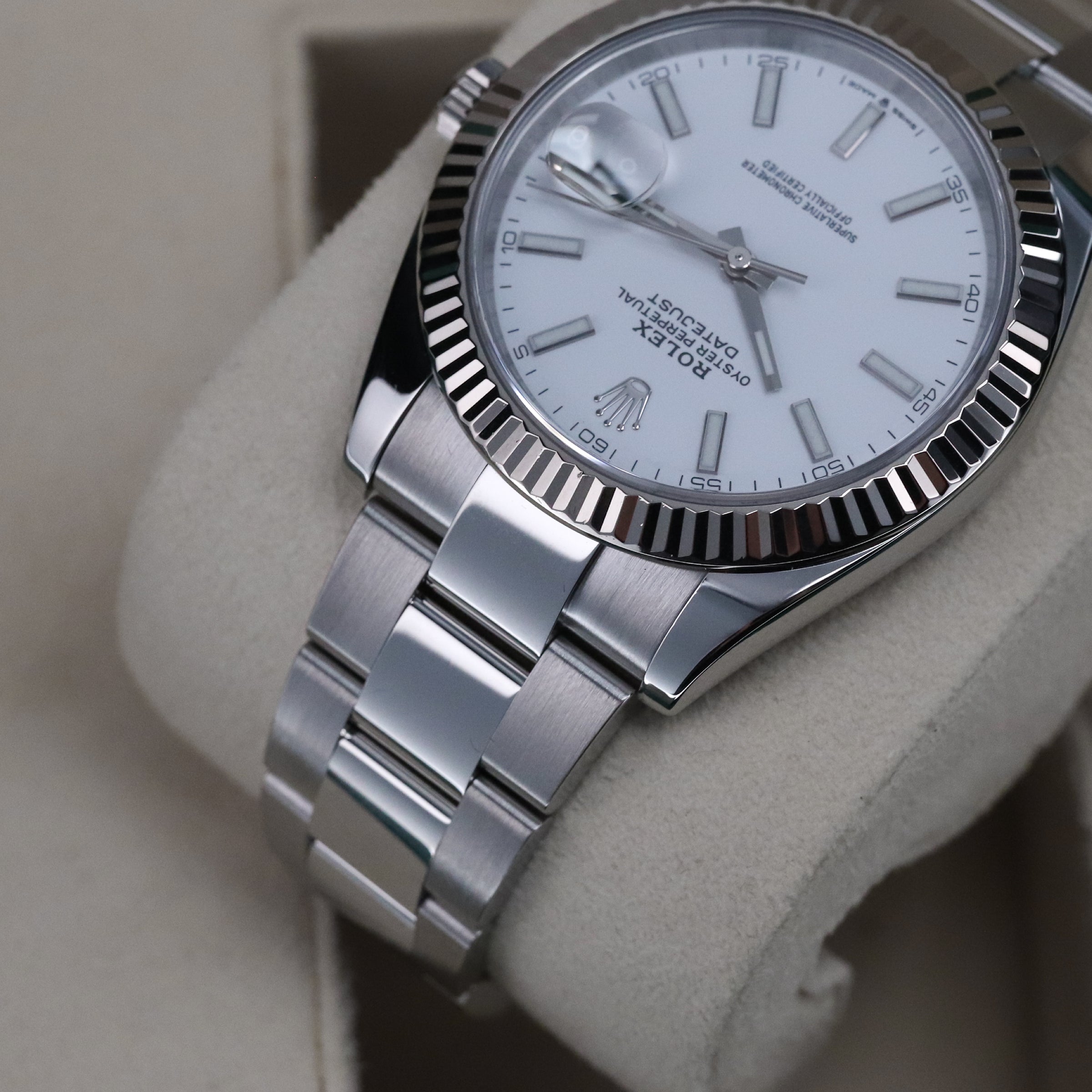 Rolex Datejust 41 White Stick Dial Fluted White Gold Bezel Oyster Bracelet 126334
