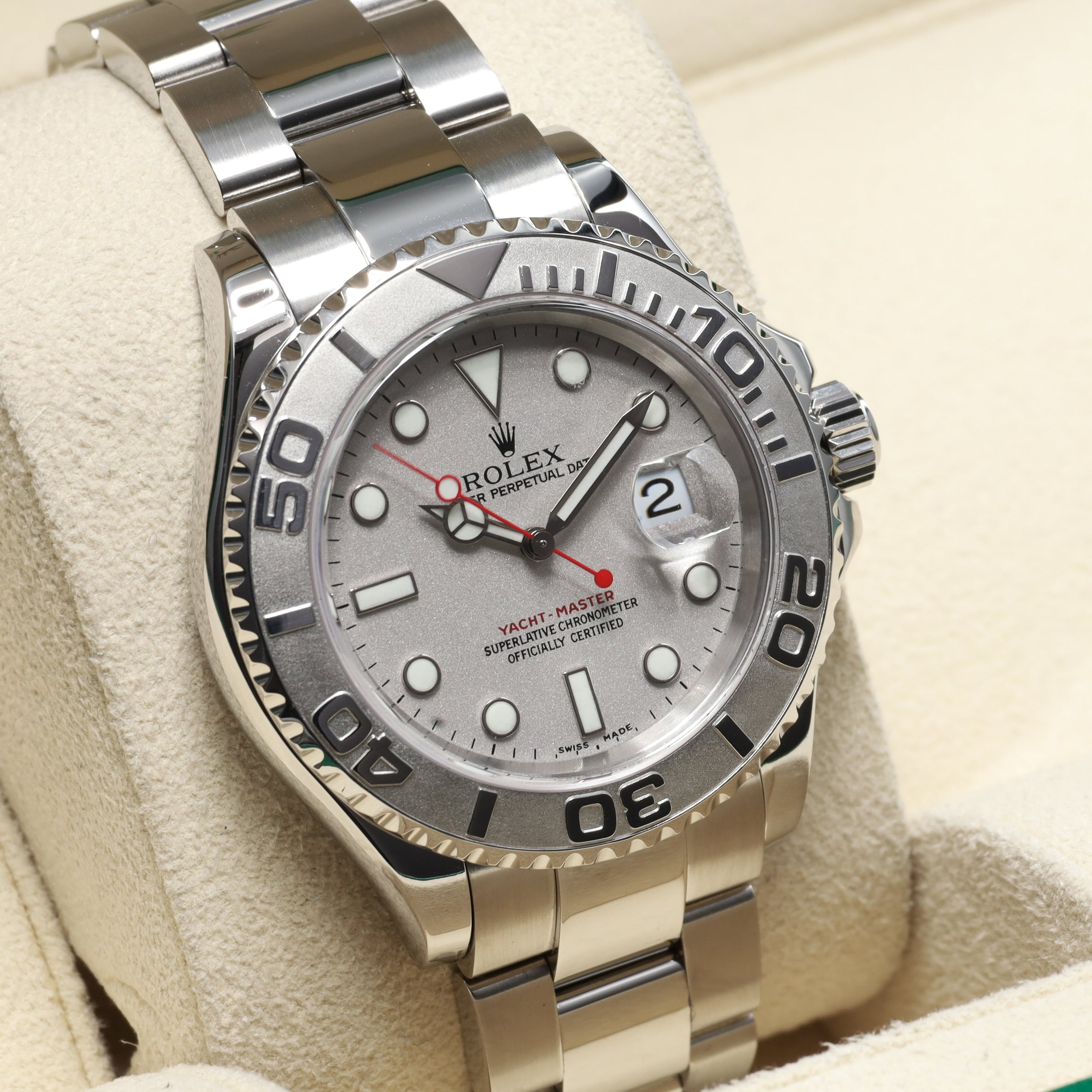 The 16622 is the Yacht-Master reference that defined the “Rolesium” look, and it’s still one of the most recognizable five-digit sports Rolexes for collectors who know the line. The standout is the silver monochrome setup with the platinum bezel, red seconds hand, and red “Yacht-Master” text that gives it just enough color without losing the clean look. If you want a classic Yacht-Master before Rolex started pushing the model into bolder modern specs, this is the one people still hunt.