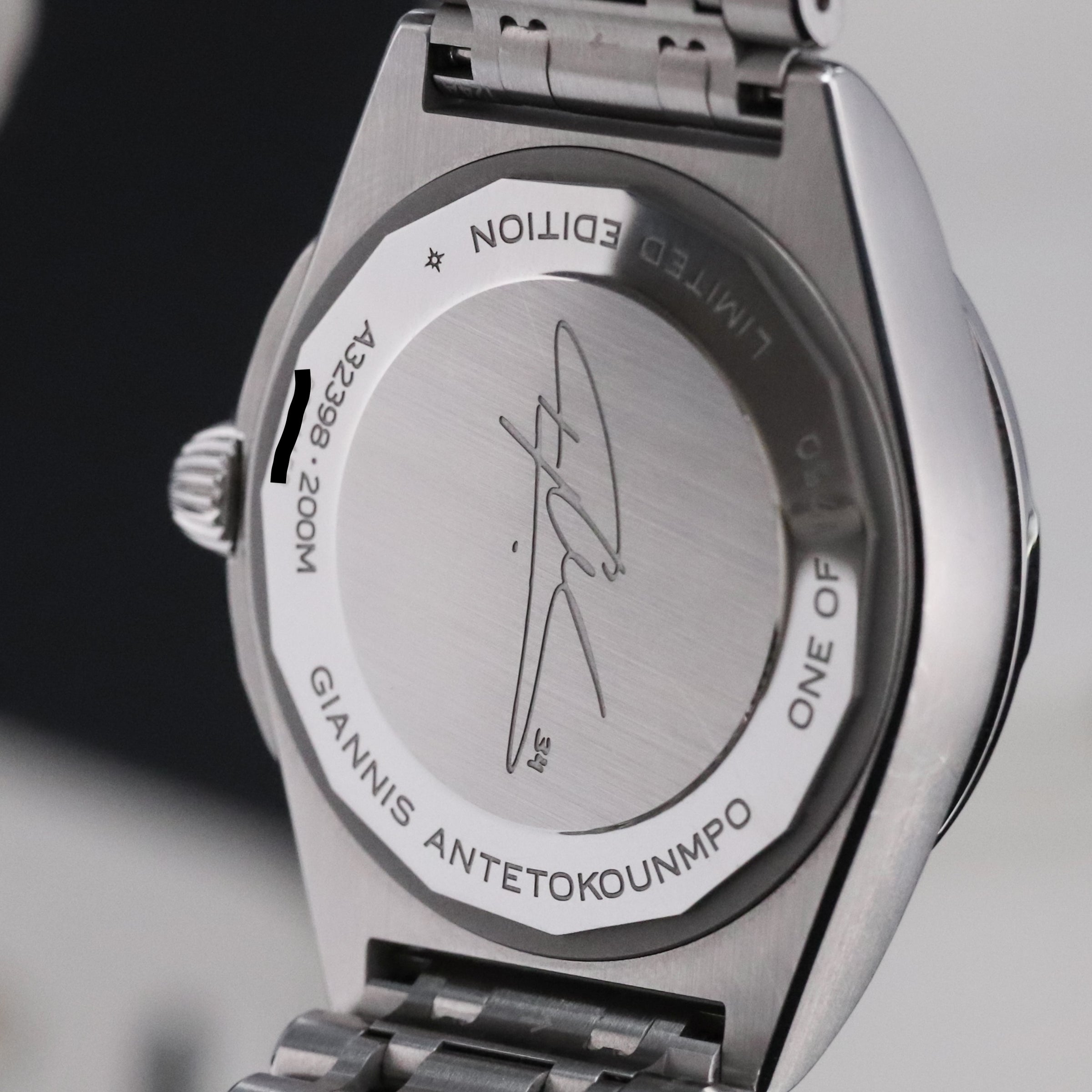 The Chronomat Automatic GMT 40 is Breitling’s tribute to travel for its dual time capability and easygoing aesthetics. This is a Giannis Antetokounmpo Limited Edition produced to just 1,750 pieces worldwide. The green dial is one of the most in-demand colors in the market right now, giving this pilot’s watch a fresh, modern edge.