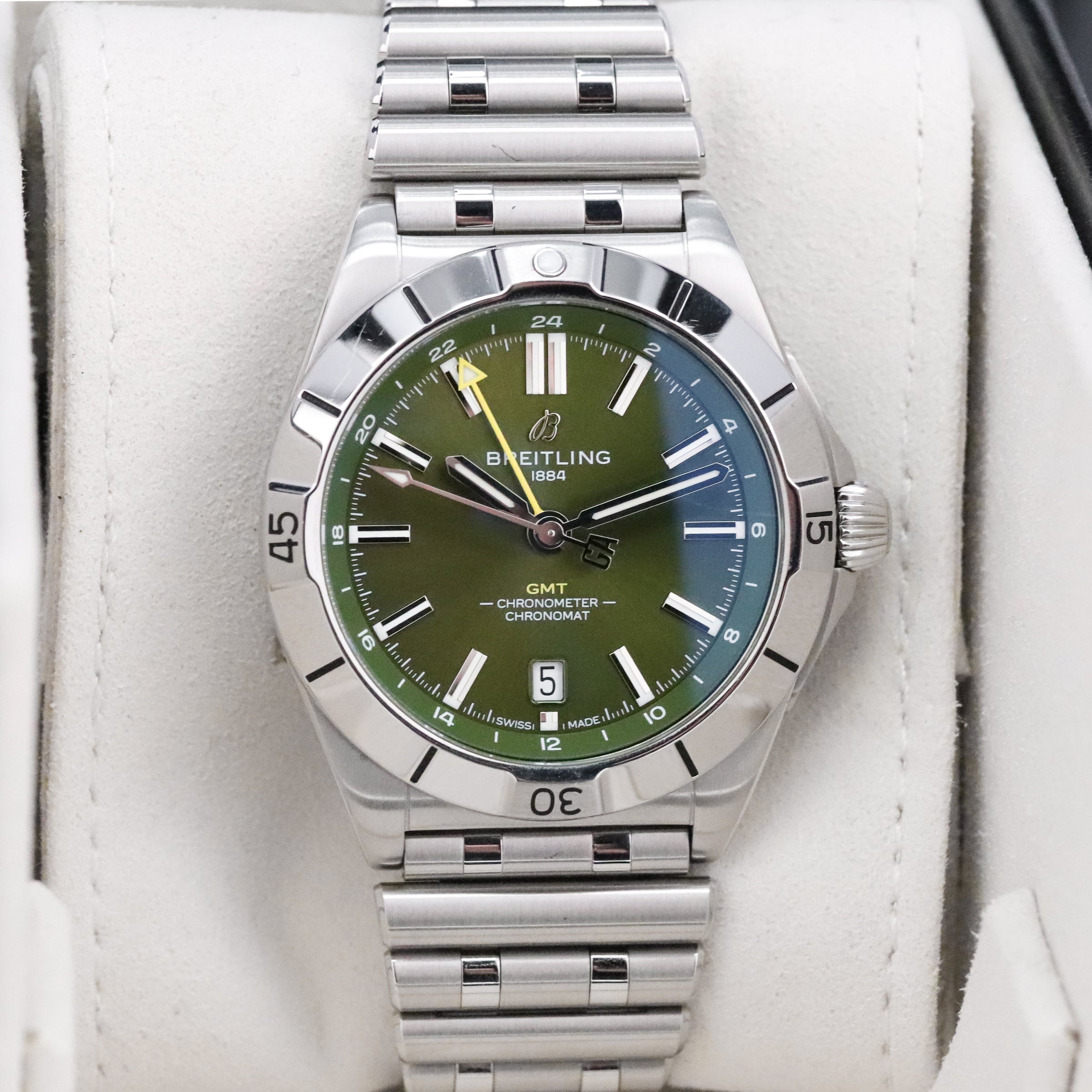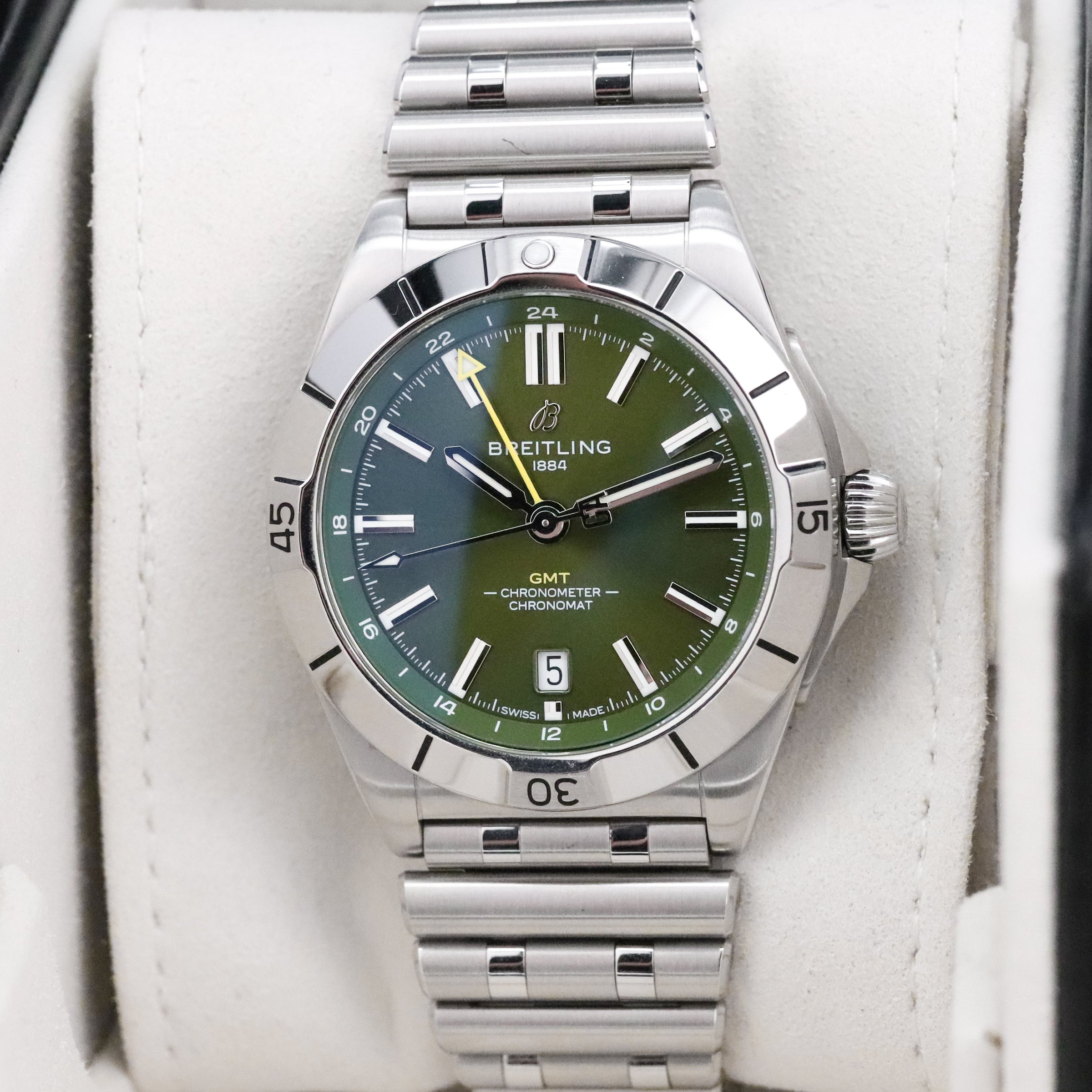 Breitling Chronomat Automatic GMT 40 [2024 COMPLETE] Limited 1750pcs 40mm Steel Case Green Dial Silver Steel Bezel Stainless Steel Bracelet A32398