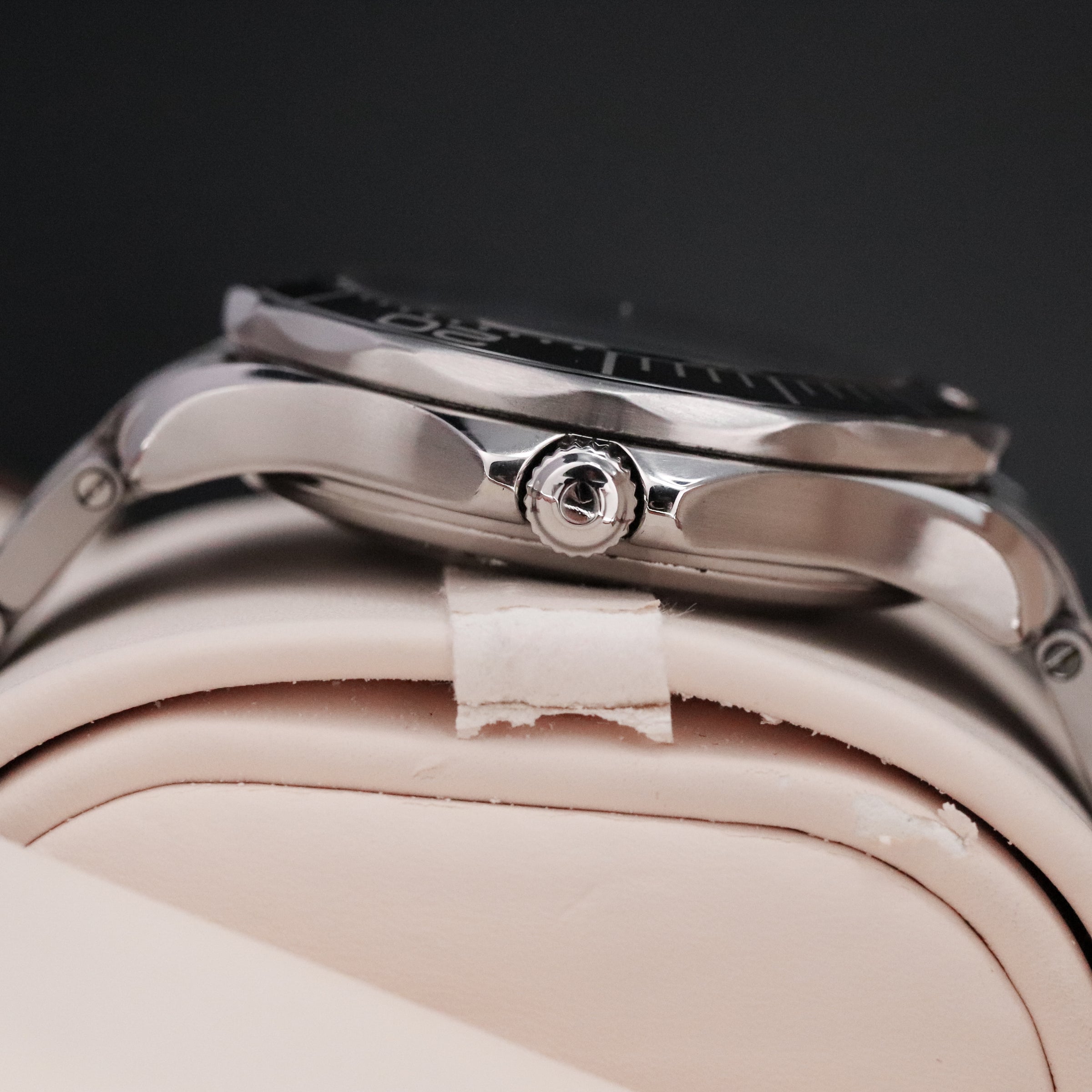 The Seamaster is a legendary watch, making it James Bond's choice since 1995. This Omega Seamaster Diver 300M stands out for its timeless black dial, and the clean, modern aesthetic that makes this reference one of the most versatile divers in the Seamaster lineup. Its wave-pattern dial, skeletonized hands, and signature helium escape valve give it the instantly recognizable Diver 300M identity collectors look for.