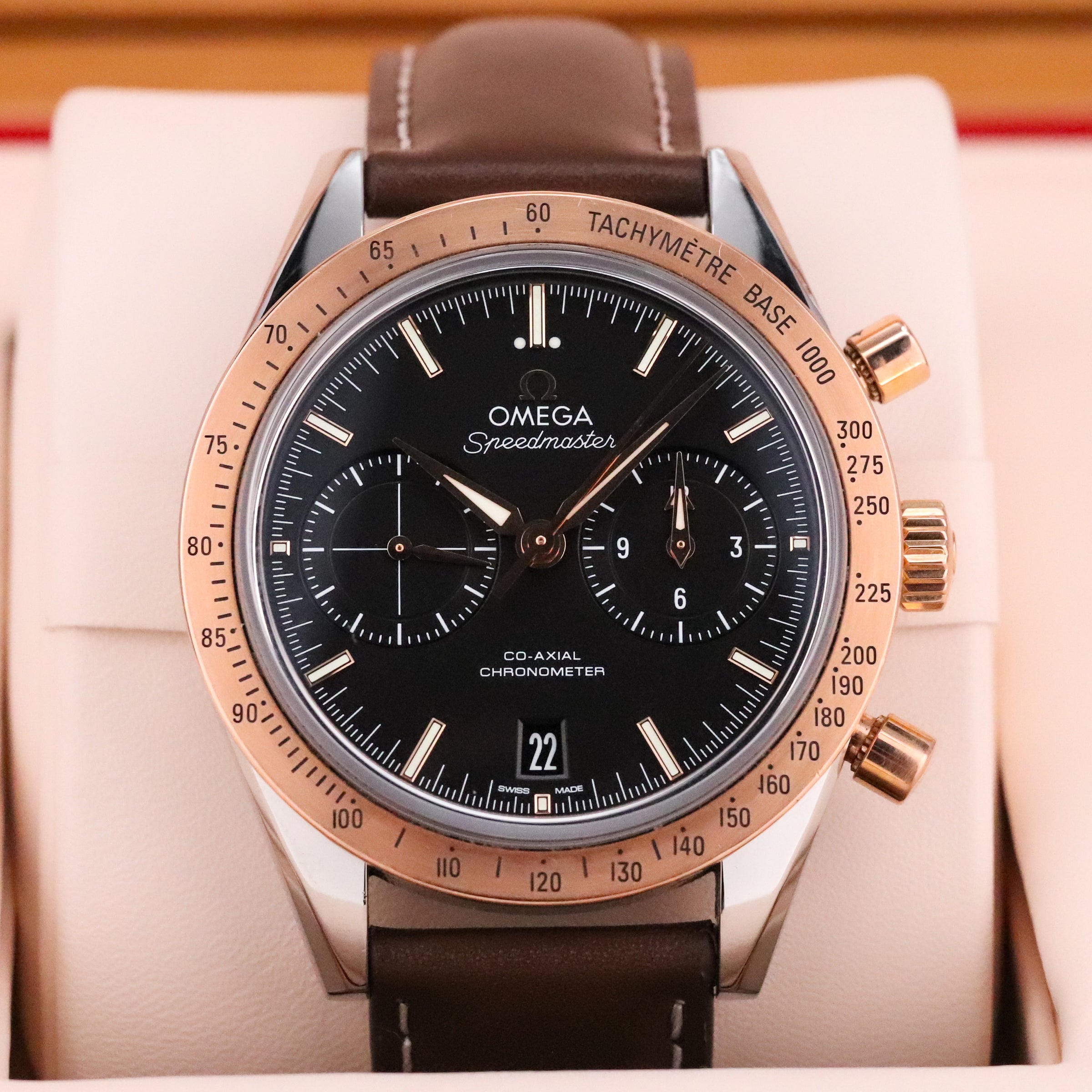 Omega Speedmaster Chronograph '57 Rose Gold [2024 COMPLETE] 41.5mm Black Dial Rose Gold Bezel Brown Leather Strap Stainless Steel Case 331.22.42.51.01.001