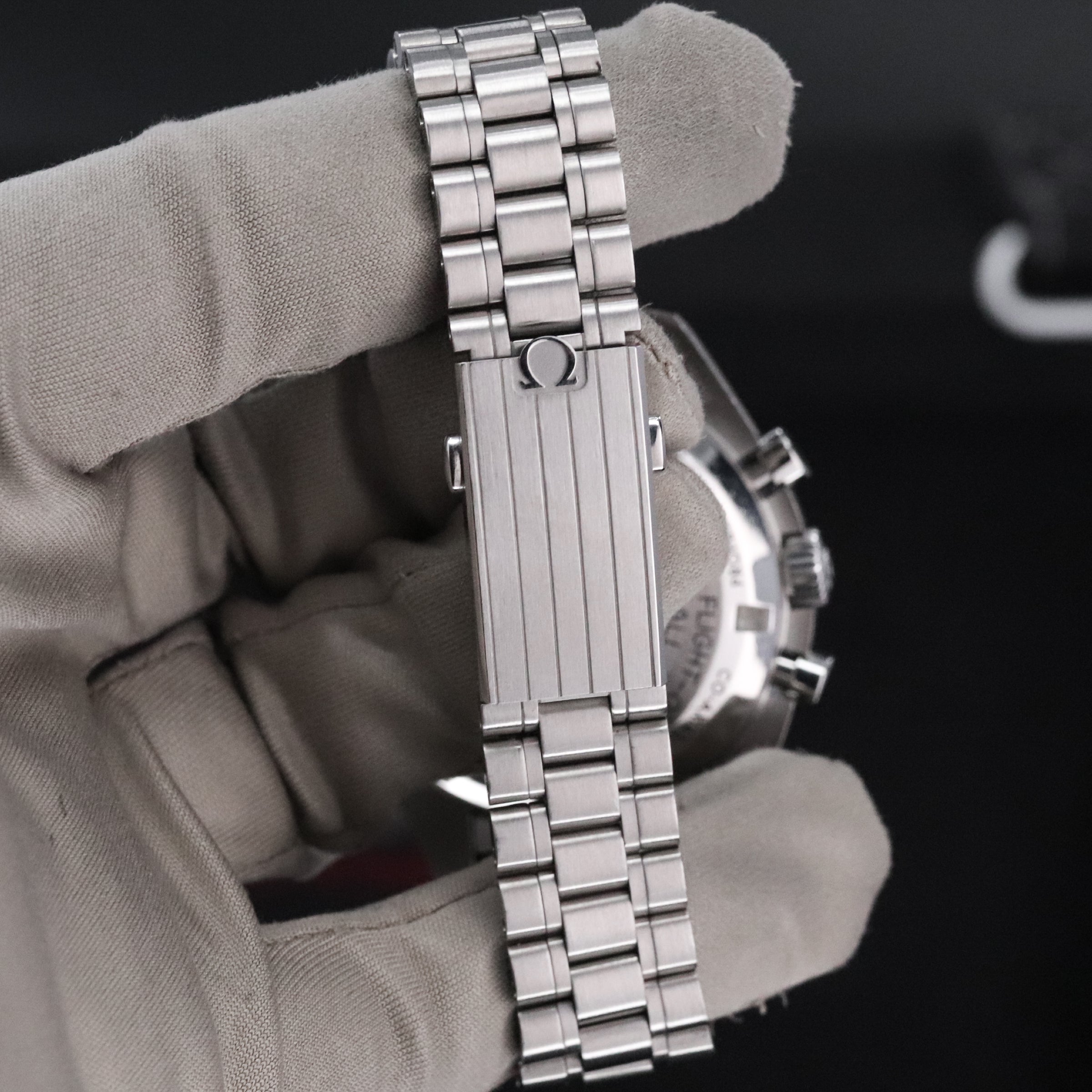 Having been a part of all six moon landings, the legendary chronograph is an impressive representation of the brand's adventurous pioneering spirit. Qualified by NASA in 1965 as the only watch for all manned space missions and Extravehicular Activity (EVA), the Speedmaster earned its Moonwatch nickname after the Apollo 11 landing. Inspired by the 4th generation Speedmaster style worn on the moon, it also includes an asymmetrical case, a black step dial with an applied OMEGA logo, and the famous dot over 90 on the anodized aluminum bezel ring.