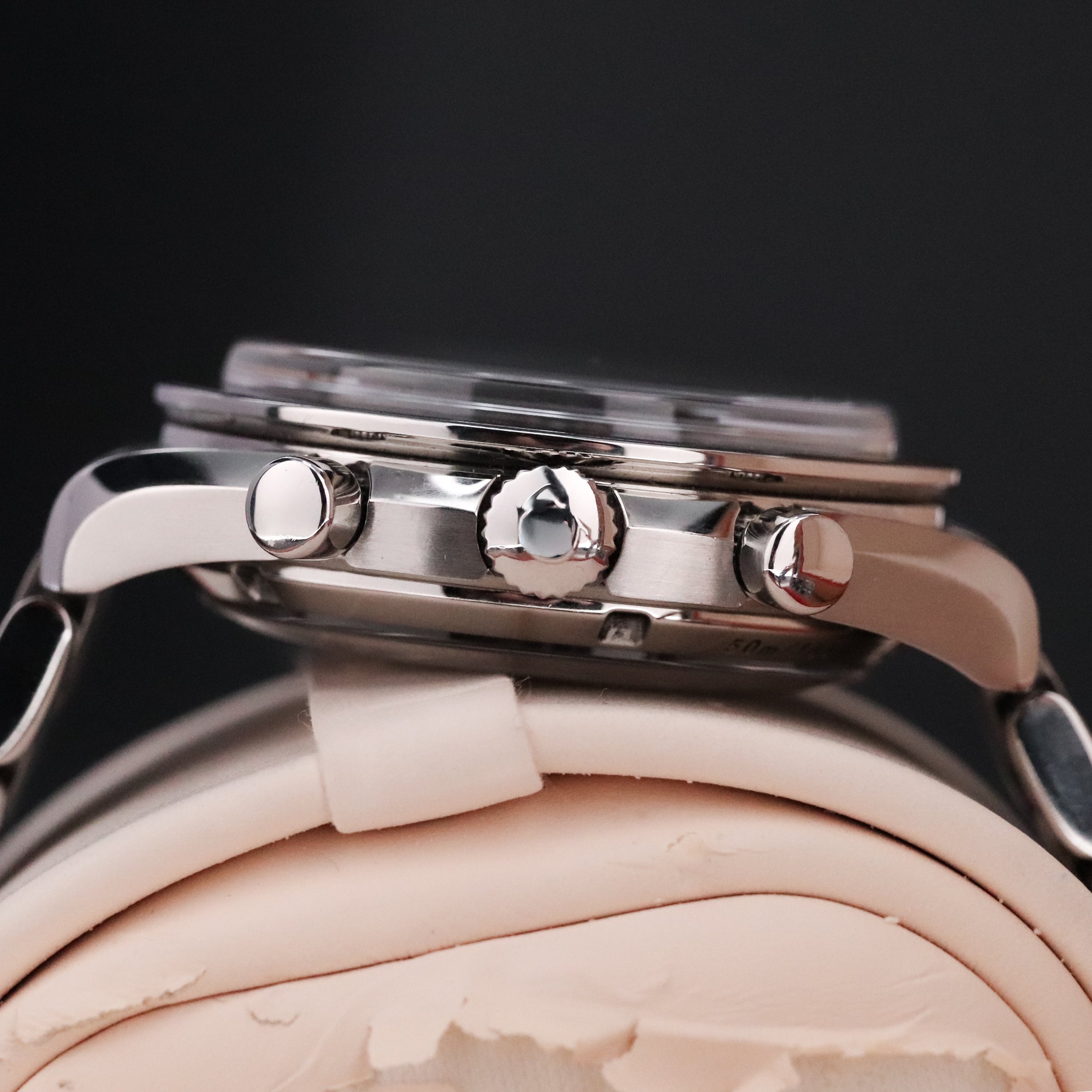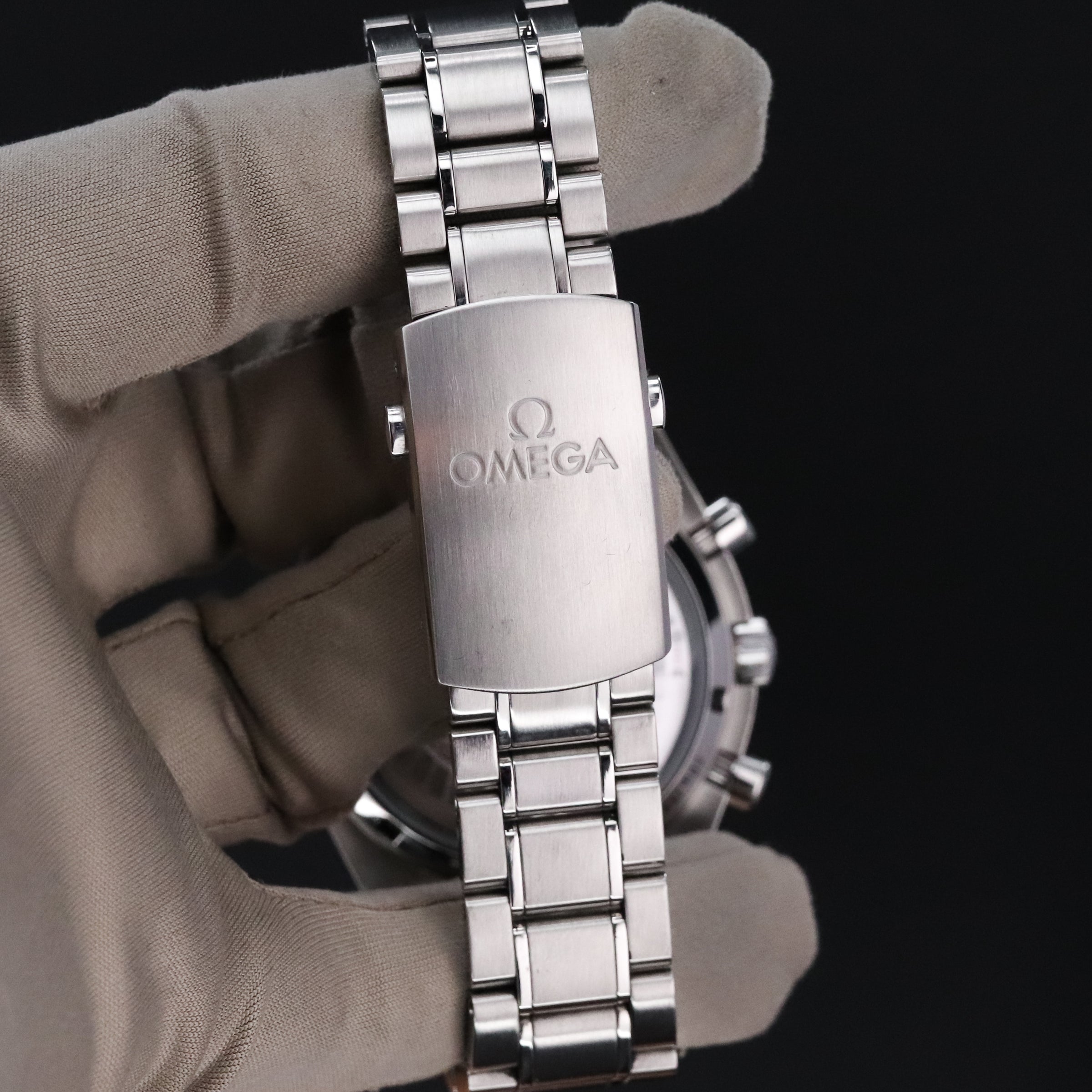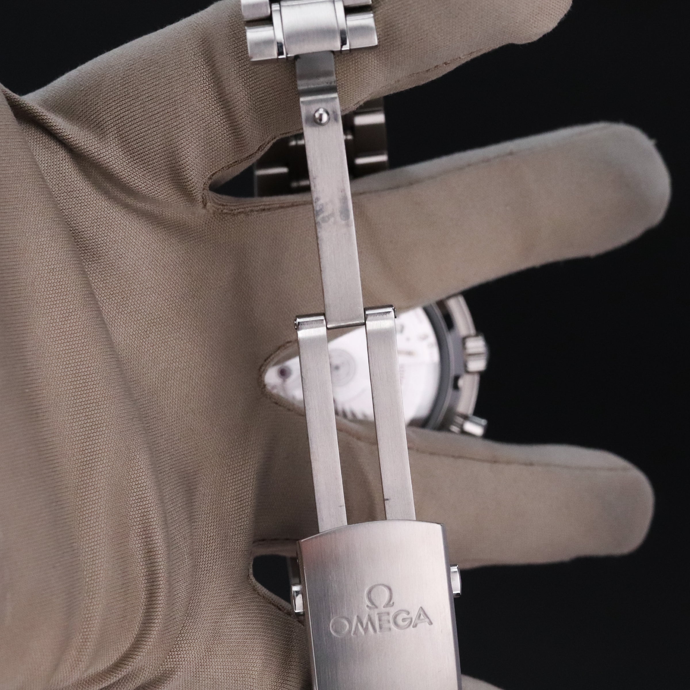 The Omega Speedmaster Racing celebrates Omega's deep history in motorsport with designs inspired by the world of high-speed racing, bringing pure racing DNA to the legendary chronograph collection. The "alternating" minute-track on the dial is a racing style which gives the models their name. This style links back to a 1968 Speedmaster design, making this a direct descendant of the original motorsport timepieces. At 44mm, this Master Chronometer represents the modern evolution of racing chronographs with contemporary sizing and cutting-edge anti-magnetic technology.