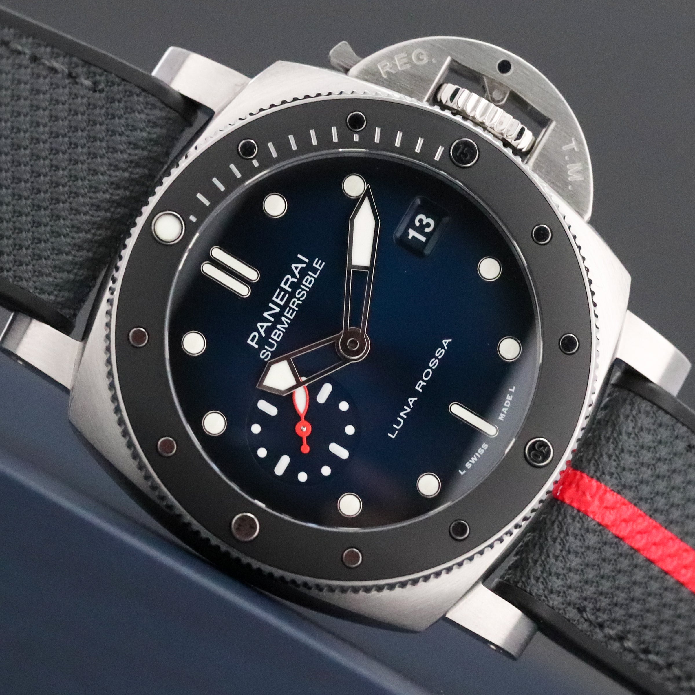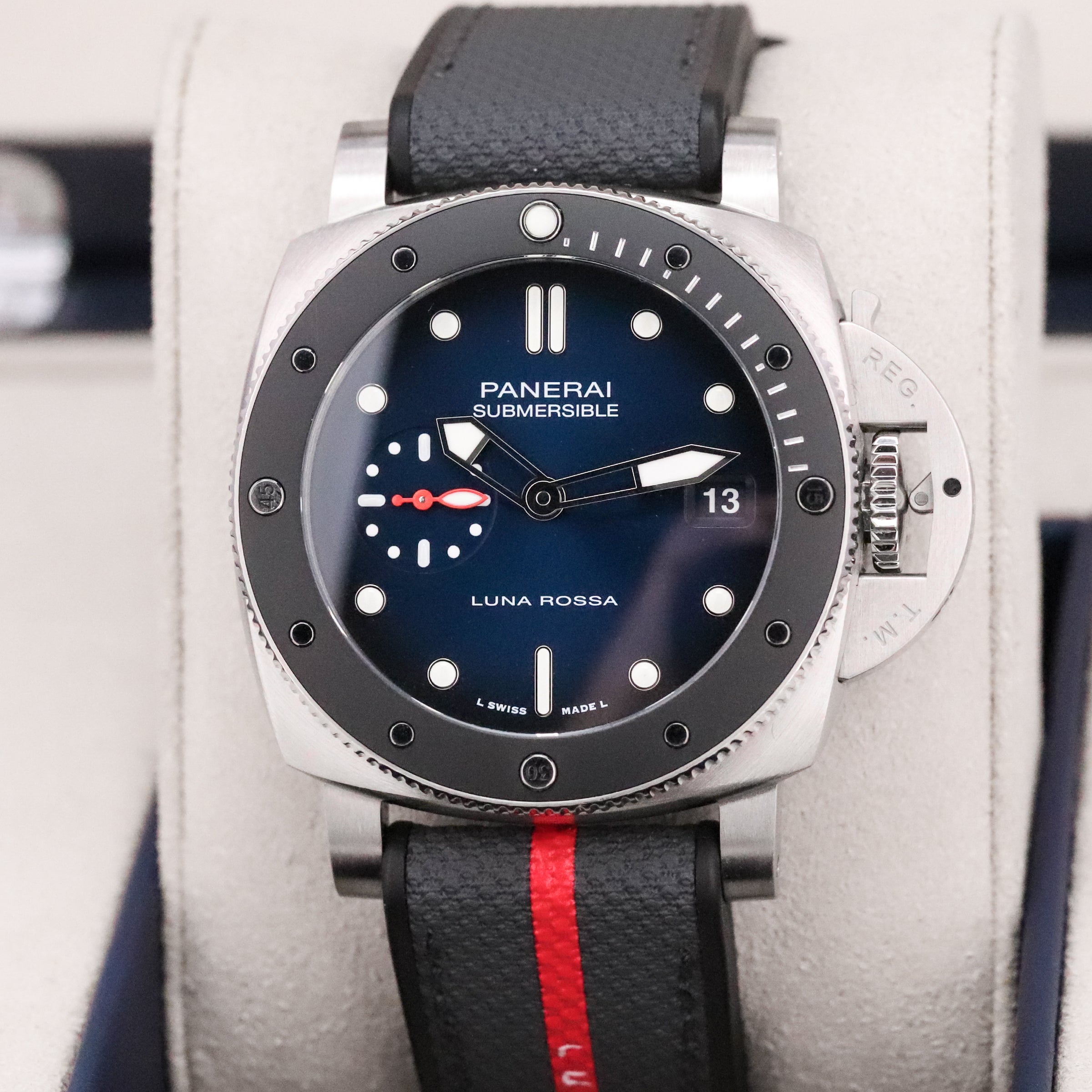 Panerai Submersible Luna Rossa [2024 Complete] 42mm Steel Case Blue Dial Black Bezel Black Strap PAM01565