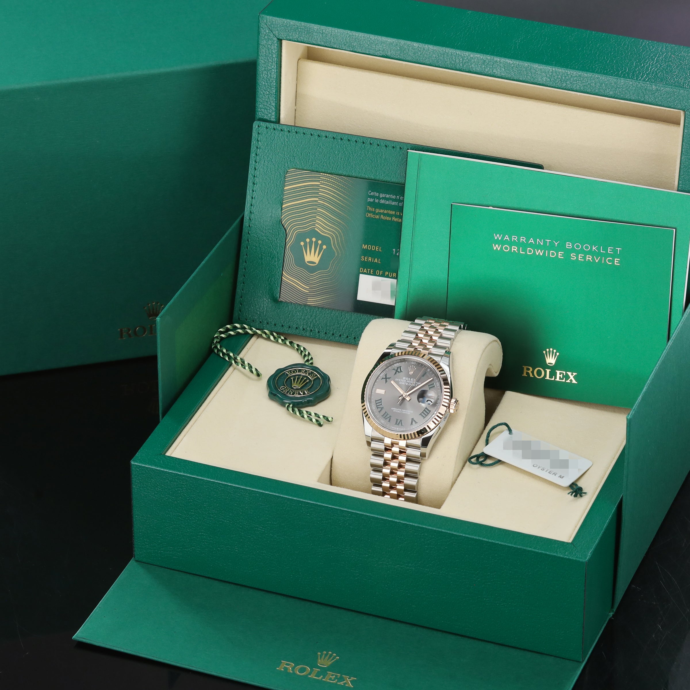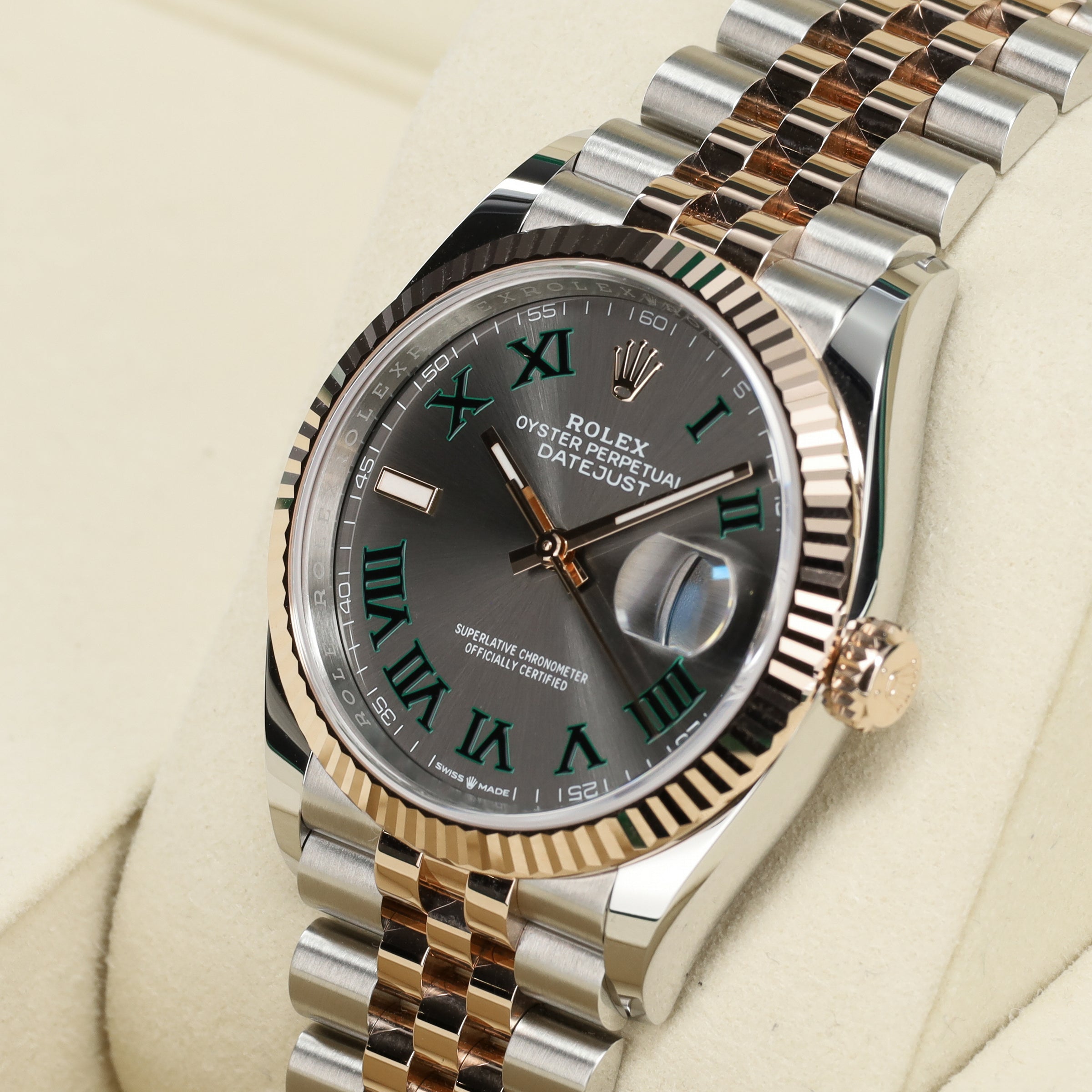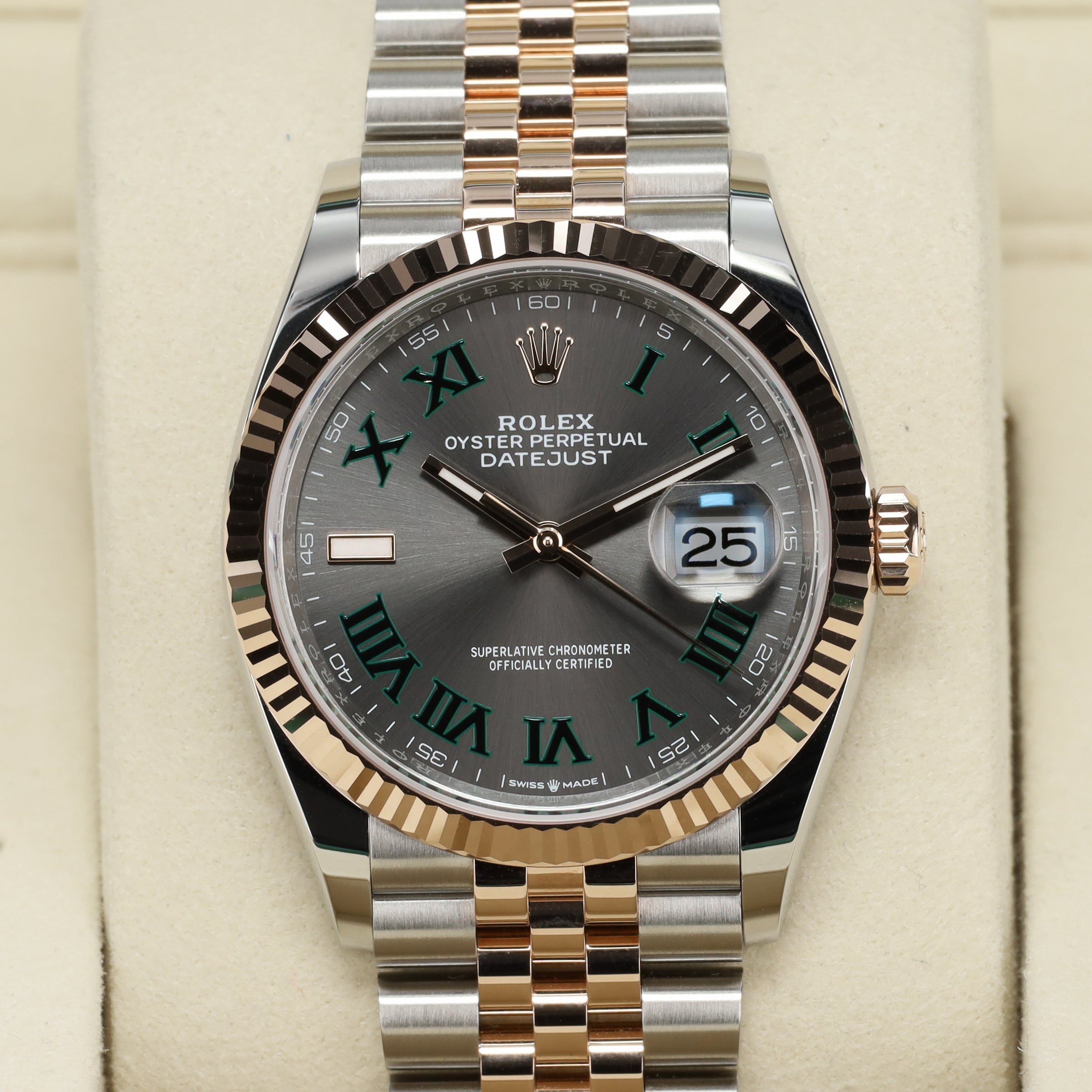 Rolex Datejust 2025 Complete 36mm Oystersteel and Everose Gold Slate Grey Wimbledon Dial Everose Gold Smooth Bezel Two-Tone Jubilee Bracelet 126231