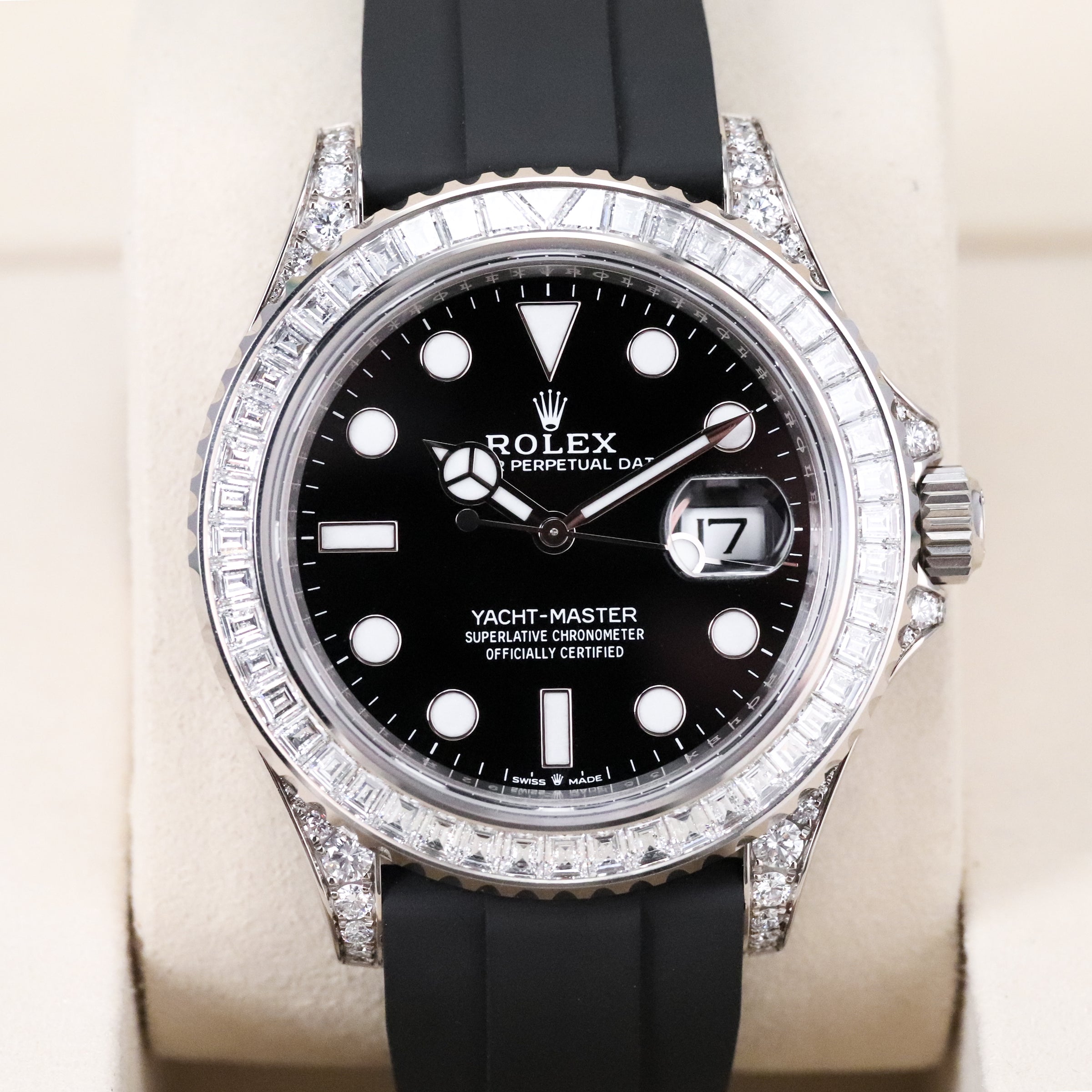 Rolex Yachtmaster [2025 Complete] 42mm White Gold Black Dial 18k Diamond Bezel Rubber Strap 226679TBR