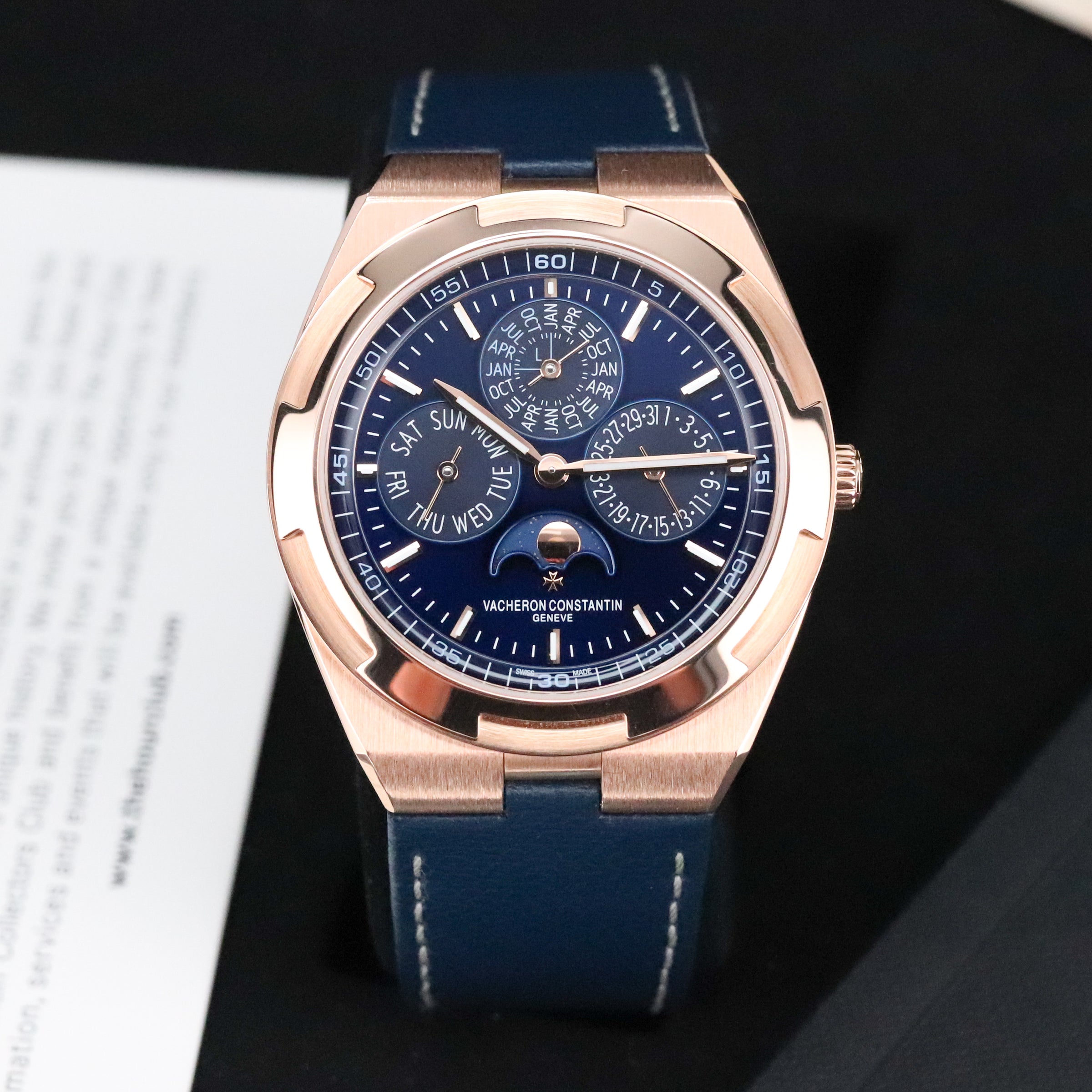 Vaceheron Constantin Overseas Perpetual Calendar Ultra Thin Complete 41mm Rose Gold Blue Dial Blue Rubber Strap 4300V/000R-B509
