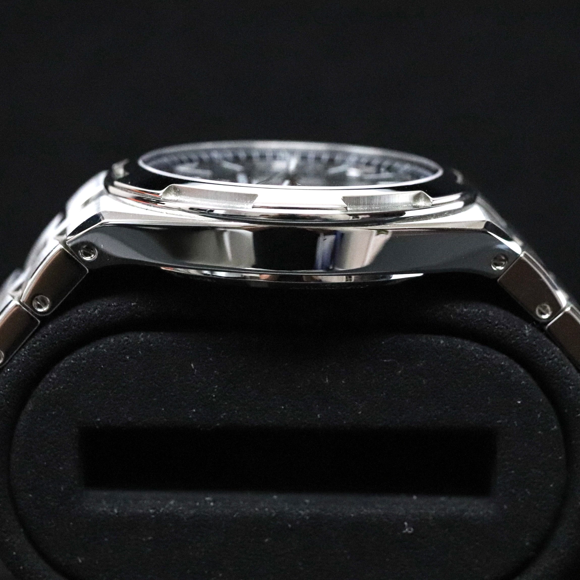 Available Upon RequestOne of the most popular modern luxury sports watches, the Overseas 41mm by Vacheron Constantin. Belonging to the “Holy Trinity” of watchmaking but still offering great value, this model delivers haute-horlogerie in a versatile steel sports format. With its sunburst black dial and full steel case and bracelet, it’s a standout for collectors who value craftsmanship as much as presence.